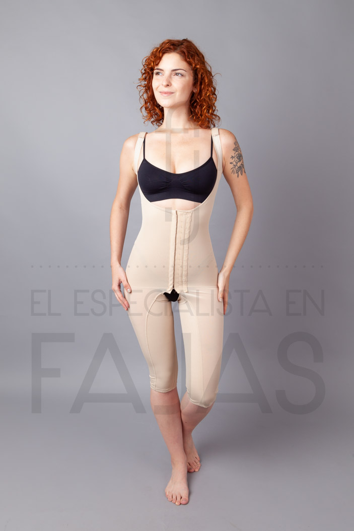 "Faja para lipoaspiraci%oacute;n de espalda, abdomen, flancos y piernas. Se regula la compresión con ganchitos al frente, posee espalda alta, pierna larga y apertura genital."La imagen es ilustrativa y puede cambiar el tono del producto.