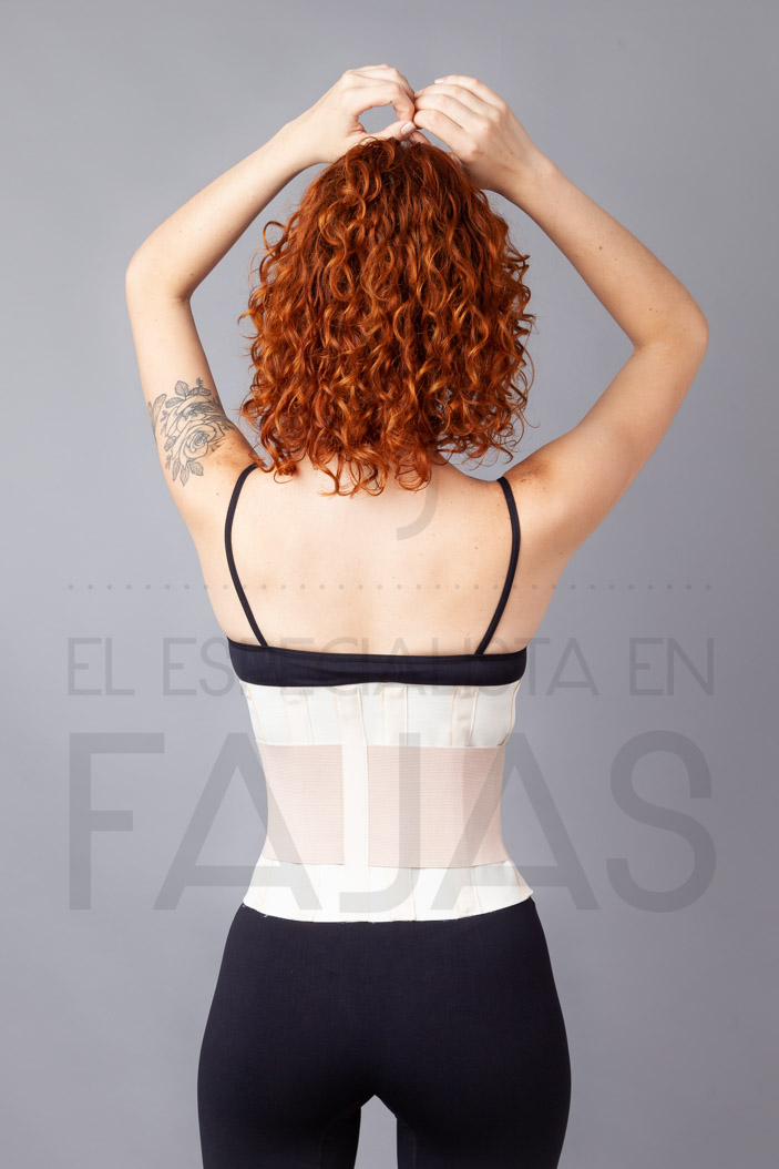 "Faja lumbar ballenada se utiliza en patologías como hernia de disco, desplazamiento, pinzamiento etc. de la zona sacro lumbar. El frente es ventilado y posee una amplia regulación tanto del contorno de la faja como de la compresión que brinda el tensor, no comprime el abdomen y es muy fácil de cerrar. Altura 24 cm en la parte posterior, 4 ballenas de metal, tensor y cierra con abrojo."La imagen es ilustrativa y puede cambiar el tono del producto.